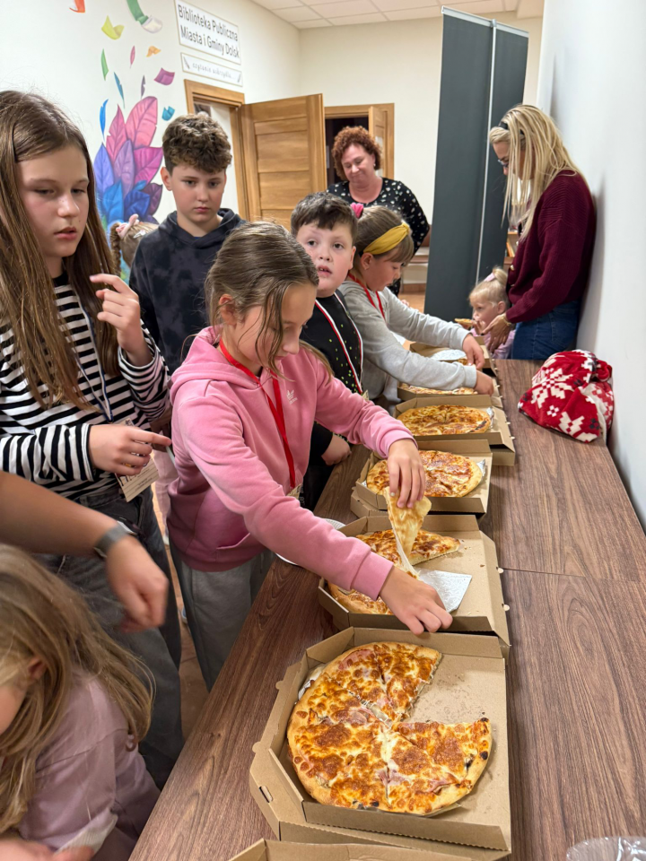 Nie zabrakło też poczęstunku. Każdy mały detektyw otrzymał również pamiątkową zakładkę. Wieczór zakończył się seansem filmowym "Biuro detektywistyczne Lassego i Mai. Rabuś z pociągu", obejrzanego w ramach ogólnopolskiej akcji Nocy Bibliotek 2025. Film został udostępniony dzięki partnerowi Nocy Bibliotek – Festiwalowi Filmowemu TAURON Młode Horyzonty.
